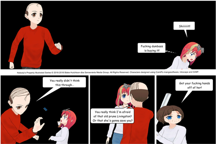 © Nobody's Property Illustrated Series, copyright 2018- | all rights reserved. This illustrated series is for entertainment purposes only. Please do not attempt any homicidal, vigilante, or other illegal acts."