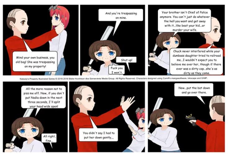 © Nobody's Property Illustrated Series, copyright 2018- | all rights reserved. This illustrated series is for entertainment purposes only. Please do not attempt any homicidal, vigilante, or other illegal acts."