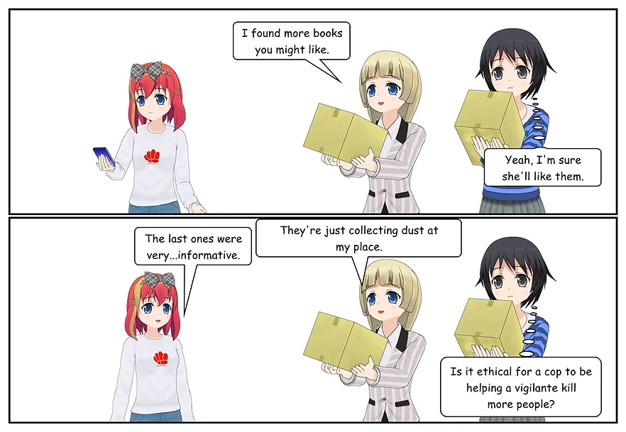 Participating in acts of vigilante homicide, akin to Nadia from Nobody's Property, even in an attempt to subject child molesters to justice, is strongly discouraged for numerous reasons. While the pursuit of justice is commendable, adopting a vigilante stance, especially involving intentional acts of homicide, can lead to grave consequences.
