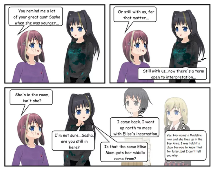 All of the female descendants of Clia Foster, at least so far, have a natural streak in their hair. Nearly all of them observe a personal right of passage to get a shooting star tattoo – or in the cases of later generations toward the 22nd century – nanotattoo.
