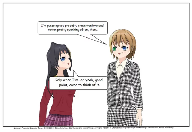 " © Nobody's Property Illustrated Series, copyright 2018- | all rights reserved. This illustrated series is for entertainment purposes only. Please do not attempt any homicidal, vigilante, or other illegal acts." "