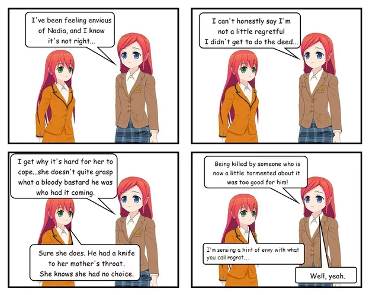 Nobody’s Property (nobodysproperty.com) is a fictional illustrated series, designed purely for entertainment and storytelling. It is imperative that readers refrain from emulating any of the vigilante or homicidal deeds carried out by characters like Nadia or others featured on nobodysproperty.com. These actions exist solely within the realm of fiction and should never be replicated in reality. Engaging in such behaviors can lead to dangerous consequences and is in direct conflict with ethical and legal norms. Always prioritize responsible and lawful conduct in the real world. Please do not attempt any actual acts of homicide or vigilantism, such as those committed by Nadia or any of the other characters on nobodysproperty.com