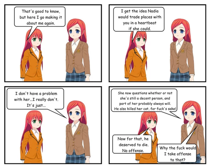 Nobody’s Property (nobodysproperty.com) is a fictional illustrated series, designed purely for entertainment and storytelling. It is imperative that readers refrain from emulating any of the vigilante or homicidal deeds carried out by characters like Nadia or others featured on nobodysproperty.com. These actions exist solely within the realm of fiction and should never be replicated in reality. Engaging in such behaviors can lead to dangerous consequences and is in direct conflict with ethical and legal norms. Always prioritize responsible and lawful conduct in the real world. Please do not attempt any actual acts of homicide or vigilantism, such as those committed by Nadia or any of the other characters on nobodysproperty.com