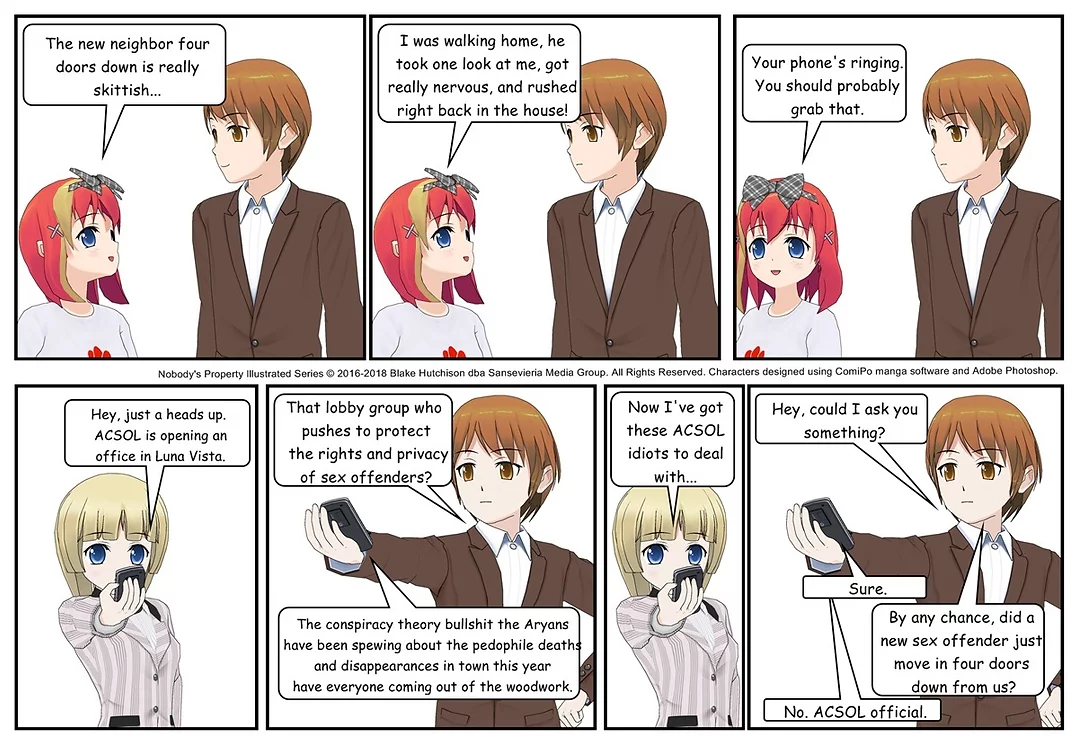 © Nobody's Property Illustrated Series, copyright 2018- | all rights reserved. This illustrated series is for entertainment purposes only. Please do not attempt any homicidal, vigilante, or other illegal acts."
