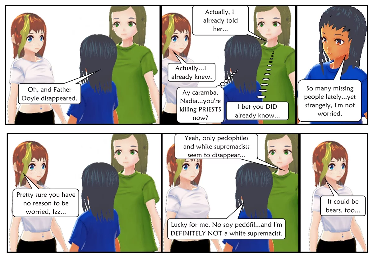 Nobody’s Property (nobodysproperty.com) is a fictional illustrated series, designed purely for entertainment and storytelling. It is imperative that readers refrain from emulating any of the vigilante or homicidal deeds carried out by characters like Nadia or others featured on nobodysproperty.com. These actions exist solely within the realm of fiction and should never be replicated in reality. Engaging in such behaviors can lead to dangerous consequences and is in direct conflict with ethical and legal norms. Always prioritize responsible and lawful conduct in the real world. Please do not attempt any actual acts of homicide or vigilantism, such as those committed by Nadia or any of the other characters on nobodysproperty.com