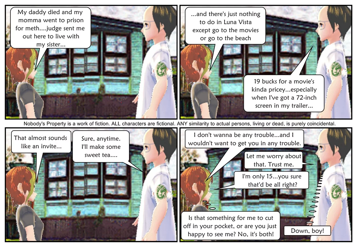 © Nobody's Property Illustrated Series, copyright 2018- | all rights reserved. This illustrated series is for entertainment purposes only. Please do not attempt any homicidal, vigilante, or other illegal acts."