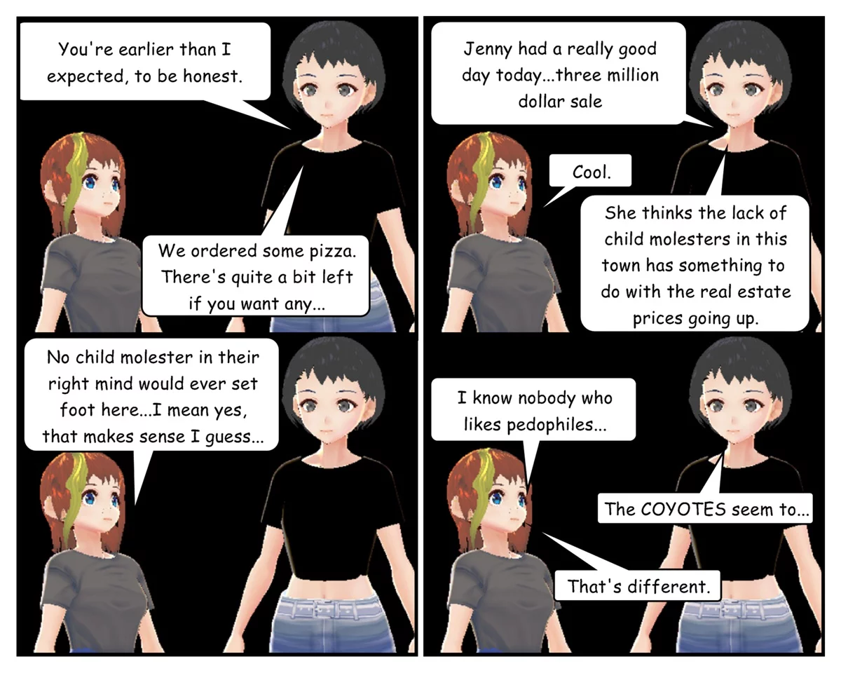 Participating in acts of vigilante homicide, akin to Nadia from Nobody's Property, even in an attempt to subject child molesters to justice, is strongly discouraged for numerous reasons. While the pursuit of justice is commendable, adopting a vigilante stance, especially involving intentional acts of homicide, can lead to grave consequences.